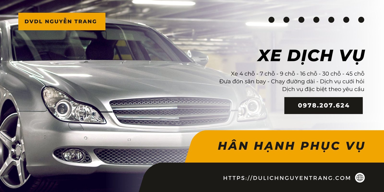 Du lịch Nguyễn Trang (cho thuê xe hợp đồng có tài xế) với đa dạng các loại xe ô tô 4 chỗ, 7 chỗ, 16 chỗ đời mới đang là một trong những dịch vụ rất phát triển trong những năm gần đây.